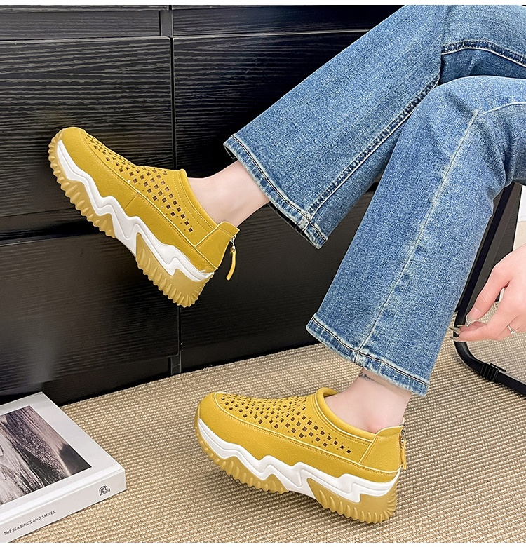 透かし彫りラウンドトウ厚底スリッポン